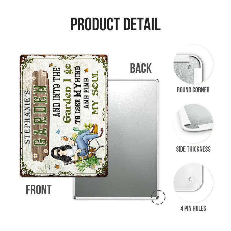 And Into The Garden I Go Gardening Girl - Garden Sign - Personalized Custom Classic Metal Signs - Gift For Gardeners